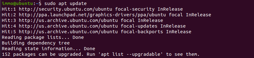 - Poté pro kontrolu aktualizací zadejte příkaz: sudo apt update (příkaz provede kontrolu aktualizací balíčků)