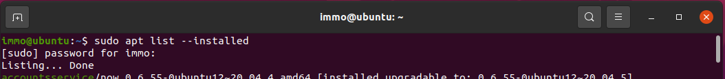 - Po otevření terminálu si zadáme příkaz: sudo apt list --installed