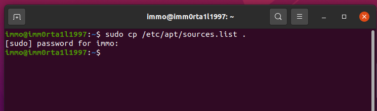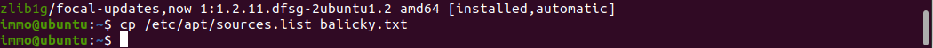 - Zadáme příkaz: sudo cp /etc/apt/sources.list . (včetně té tečky - příkaz pro naší domovskou složku) nebo sudo cp /etc/apt/sources.list.backup .