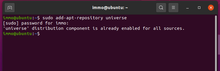- Po zadání příkazu se buď repozitář universe přidá nebo se vypíše, že již je připraven k použití