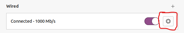 - V menu Settings si najdeme položku Network a poté si v řádku Wired klikneme na ozubené kolečko