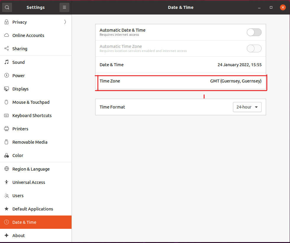 - V settings si najděte kolonku Date & Time v levém menu