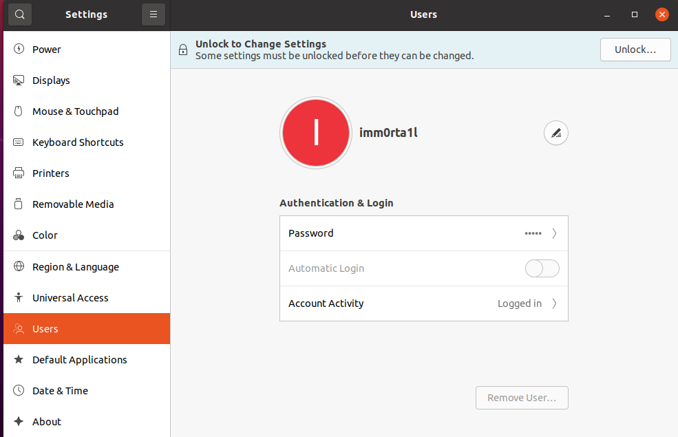 - Nyní bude možná nutné odemknout toto nastavení, tedy rozklikněte vpravo nahoře Unlock a poté se Vám zde objeví Add user...