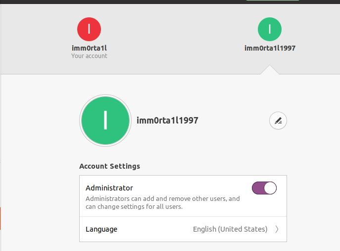 - Vyplňte formulář vaší vybranou přezdívkou a nezapomeňte účet nastavit jako ADMIN ! Stačí kliknout na kolonku Administrator (takže ne Standard ! ) ... A poté jenom odklikněte zelené tlačítko Add a účet bude vytvořený. Můžete účtu taky přidělit heslo, které se ale ZAPAMATUJTE :) Bude potřeba v operaci níže :)
