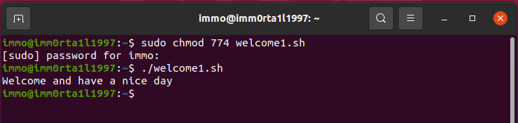 - Skript by měl něco vypsat -> V mém případě jsem si udělal Welcome skript který vypsal "Welcome and Have a nice day"